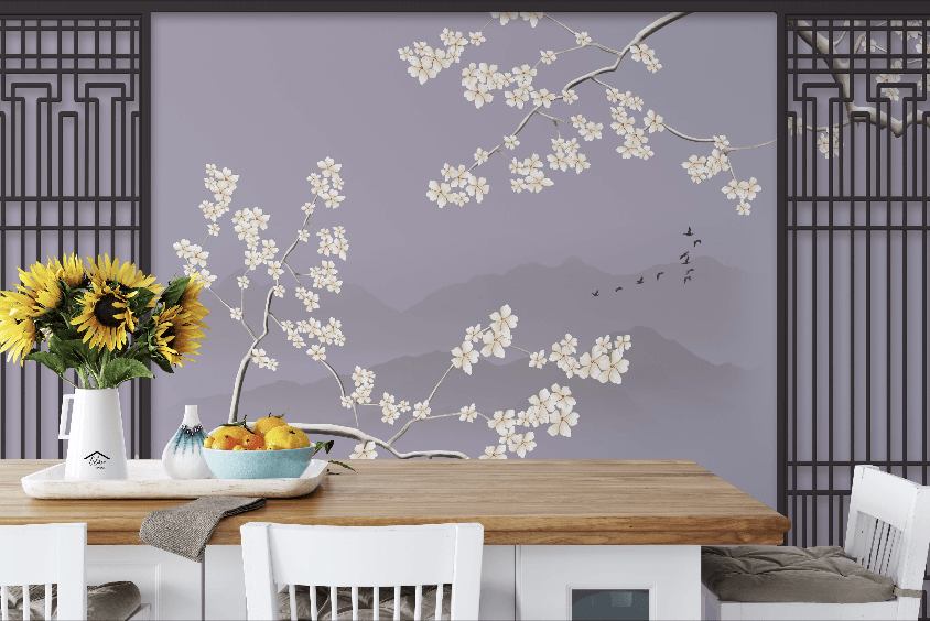 Decorate the walls with beautiful Chinoiserie patterns into your room with the Chinoiserie wall mural to beautify and add color to your child’s room interior. Design watercolor is very suitable to be combined with various interior nuances.